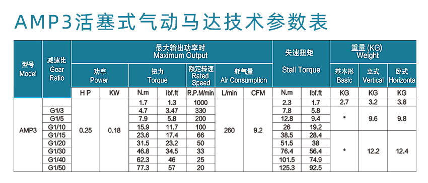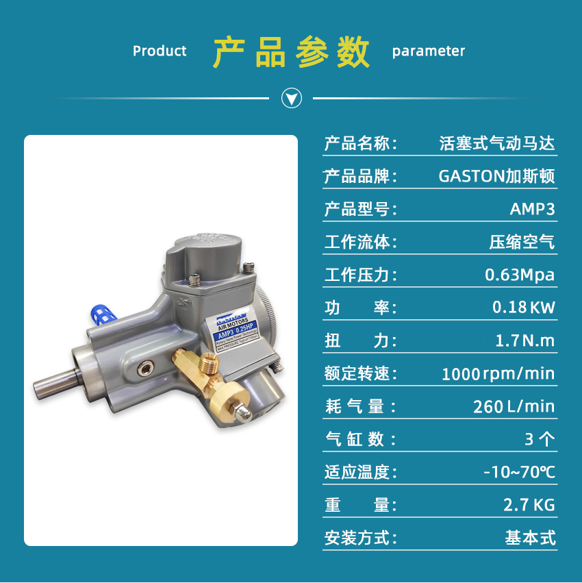 产品名称:活塞式气动马达AMP3-T